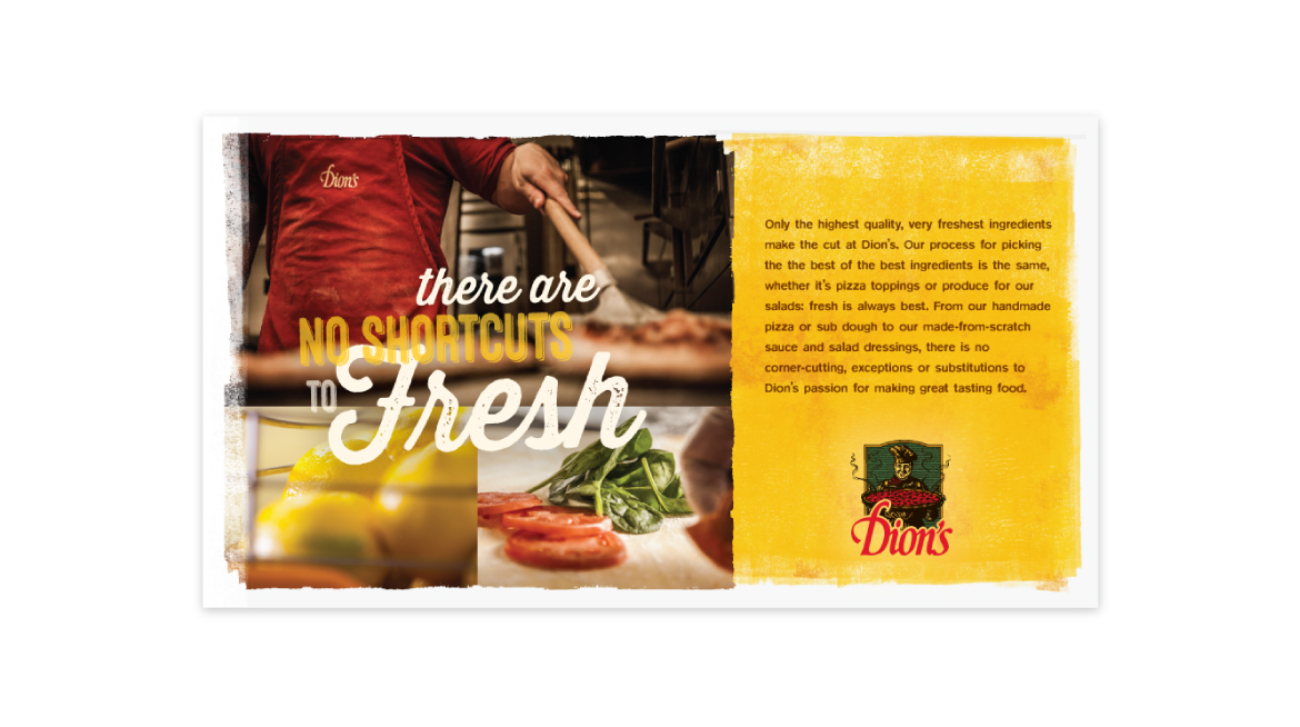 What better way to brainstorm a brand refresh than over a table of tasty goodness made fresh by Dion’s? So we dug-in while we dug-deep for the nuances of what makes this brand cook. Stirring in a little of this, and a pinch of that, we helped them visualize their idea of a handcrafted food brand. Perfectly imperfect with a side of fun.